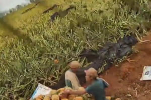 下午俩人光明正大去地里偷凤梨,竟然装了满满一车才离开