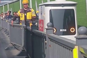 无人驾驶车在非机动车道堵路直接不走,外卖小哥直接将护栏搬走